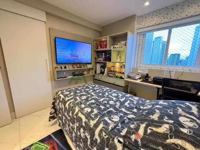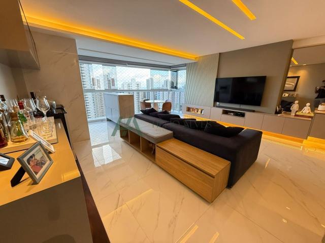 APARTAMENTO: Lindo Apartamento Todo Decorado, Com Varanda Gourmet Integrada à Sala que Tem 03 Ambientes, 4 quartos, sendo 4 suítes, Todos Com Móveis Projetados, dependência completa, lavabo e Três Vagas Para Automóveis.